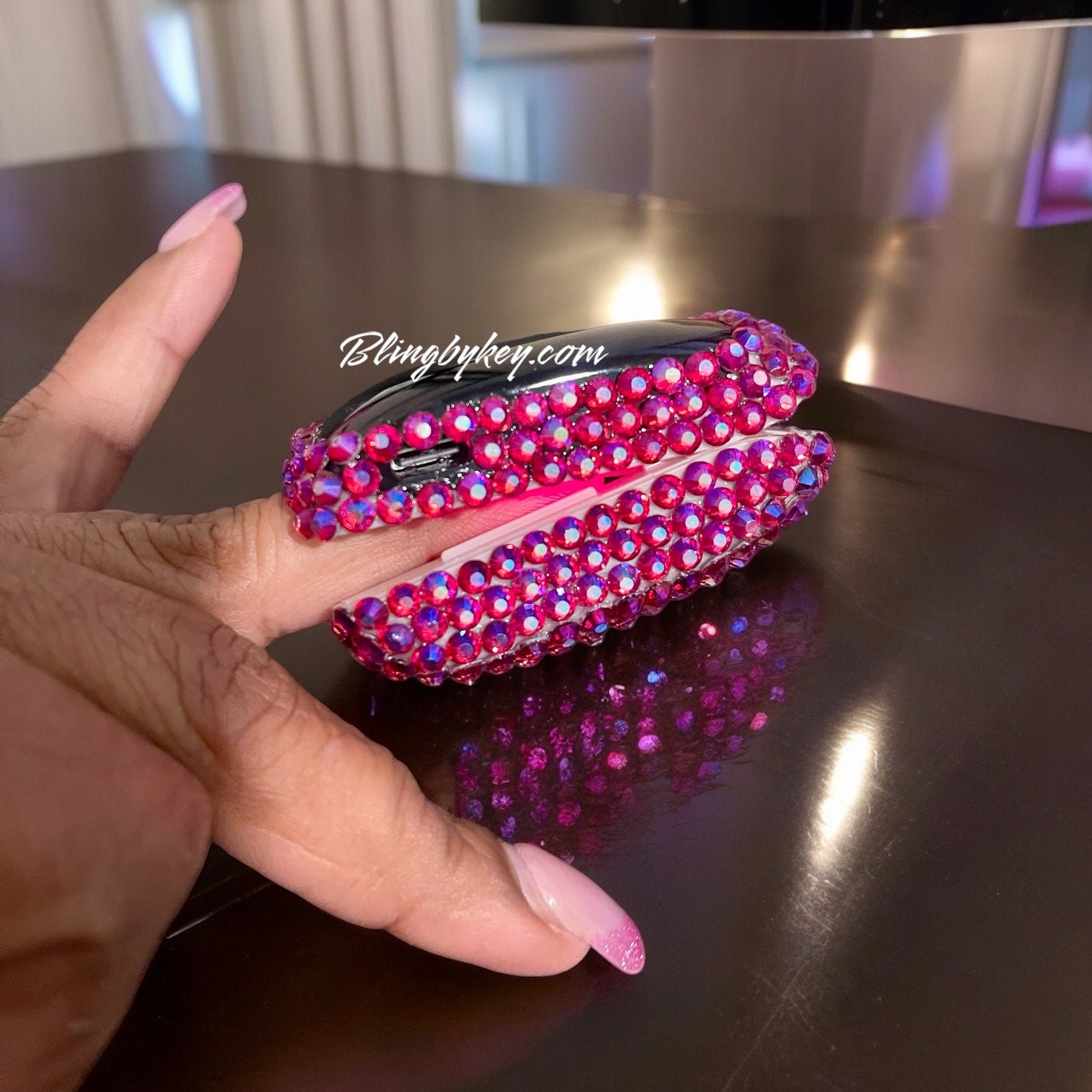 The Cotton Candy Bling Pulse Oximeter is a functional medical accessory enhanced with hand-placed Cotton Candy AB rhinestones for a bold, joyful finish. Each rhinestone reflects deep raspberry pink with purple and blue iridescent shifts, creating a playful sparkle that stands out beautifully in any setting.