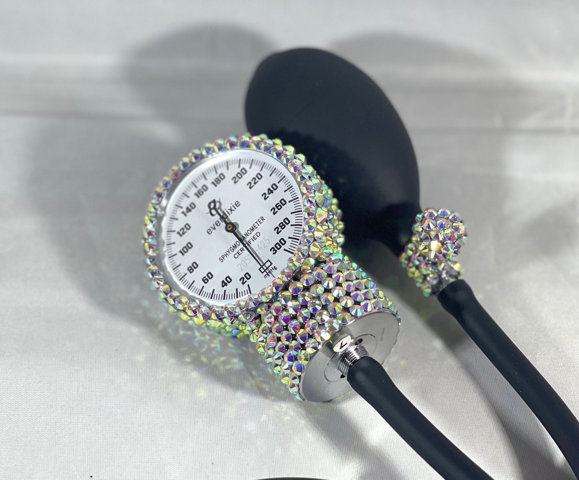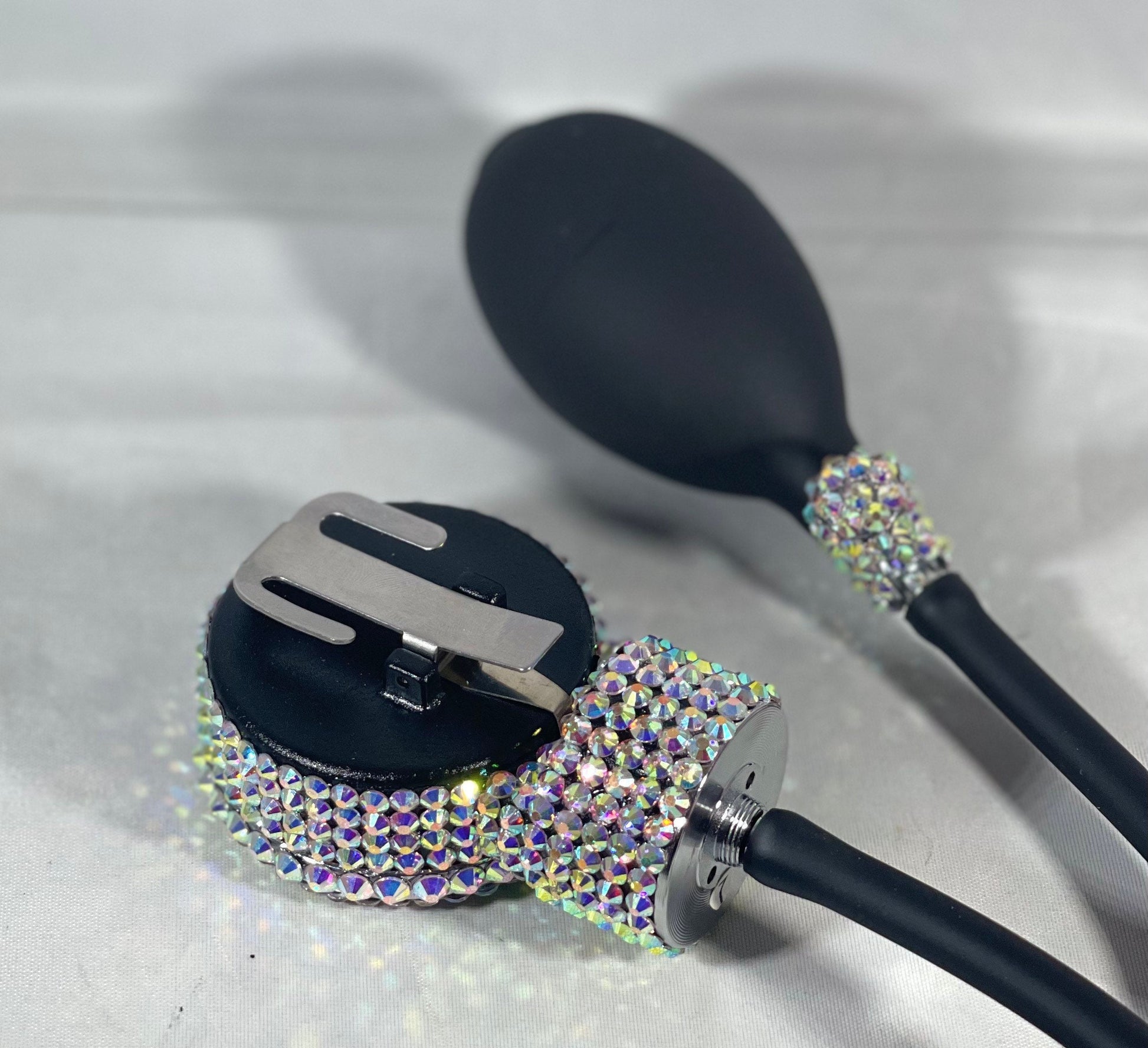 Introducing our handcrafted Blood Pressure Cuff, meticulously designed with beauty and functionality in mind. This unique cuff features a sparkling rhinestone of your choice, seamlessly transforming your medical equipment into a glamorous accessory. Made from durable nylon, this latex-free cuff is tailored to fit adult arms ranging from 10" to 16" in circumference. Each blood pressure set comes complete with a stylish zippered carrying case, making it not just a functional item but also a chic addition to your health monitoring routine.